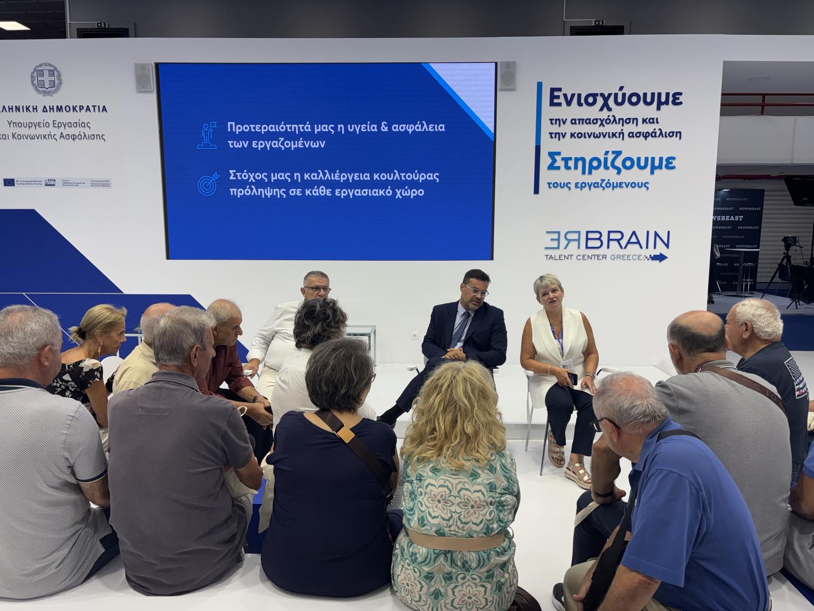 Στο περίπτερο του Ταμείου παραβρέθηκε η Υπουργός Εργασίας & Κοινωνικής Ασφάλισης, κα Νίκη Κεραμέως, ο Γενικός Γραμματέας Κοινωνικών Ασφαλίσεων Κων/νος Τσαγκαρόπουλος, εκπρόσωποι της δημόσιας διοίκησης και θεσμικών φορέων, πολίτες κ.ά.